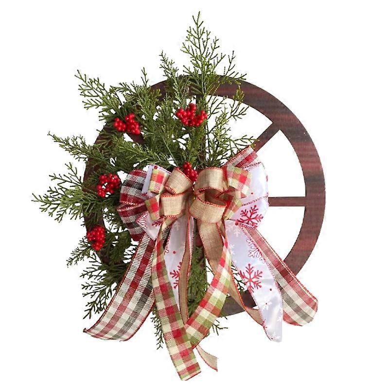 Christmas Wooden Wagon Wheel Wreath Christmas Front Door Wall Decorations