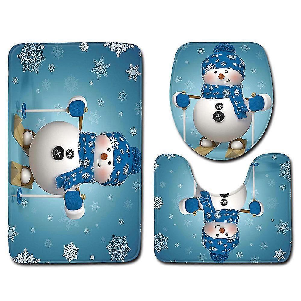 Xmas Christmas Santa Non Slip Mat Toilet Seat Cover Set Room Bathroom Decoration