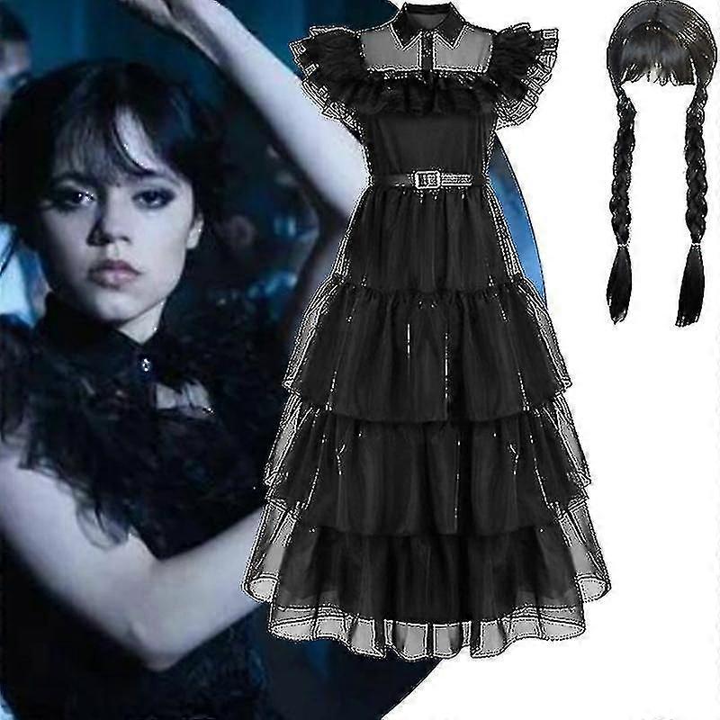 halloween christmas Women Wednesday Addams Movie Cosplay Retro Costume Maxi Dress Wig Role Play Suit For Halloween Carnival Party Fancy Dress Up
