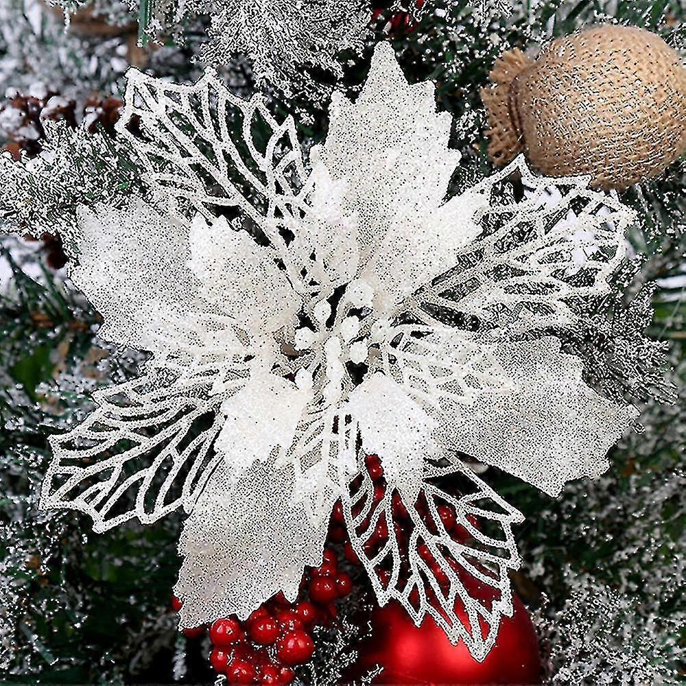 Christmas Poinsettia Glitter Flower Xmas Tree Hanging Decor Party Ornament-7