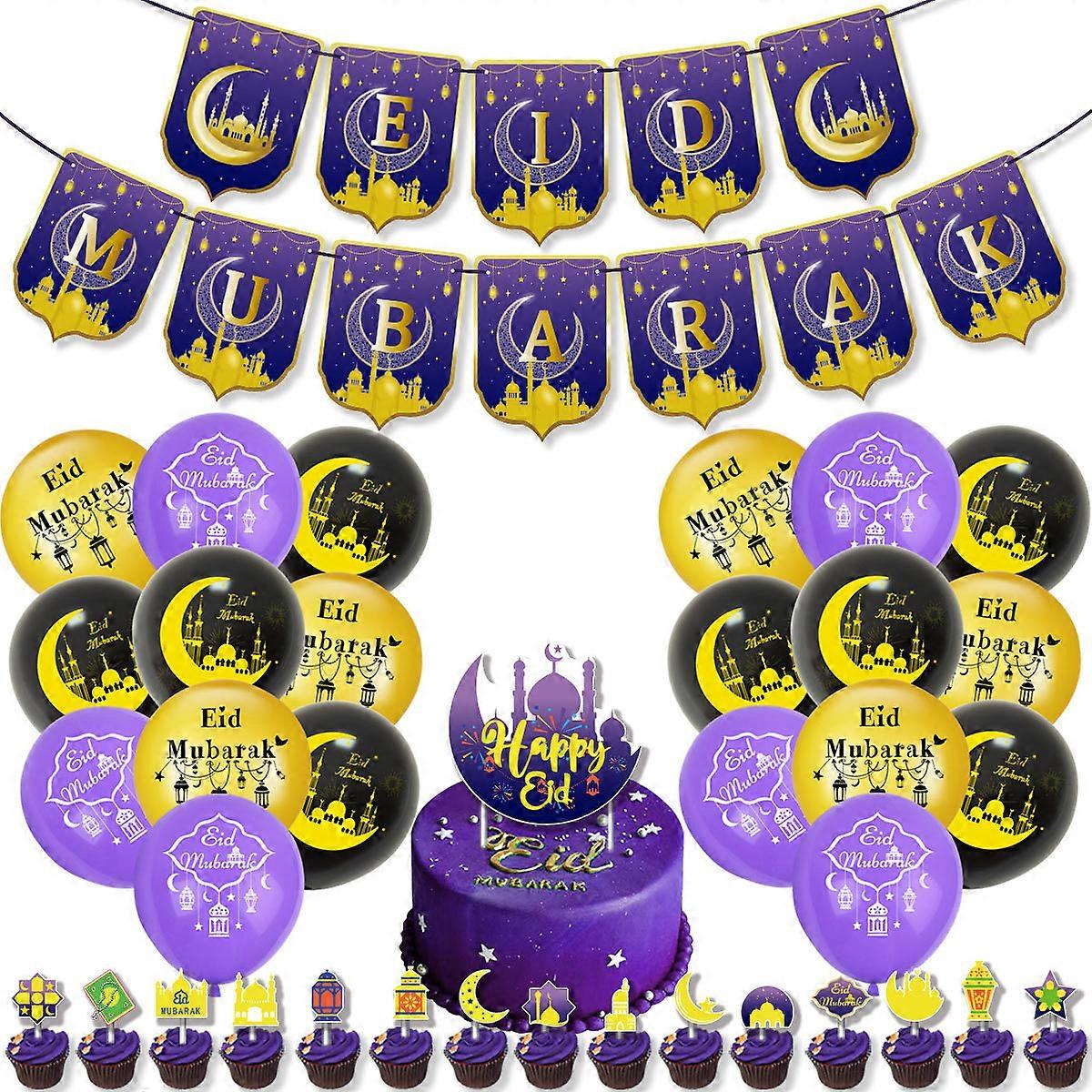 Eid Mubarak Ramadan Decoration, Balloons Banner Moon Stars Cake Toppers, Eid Ramadan Kareem Festival Party Supplies for Home Dcor