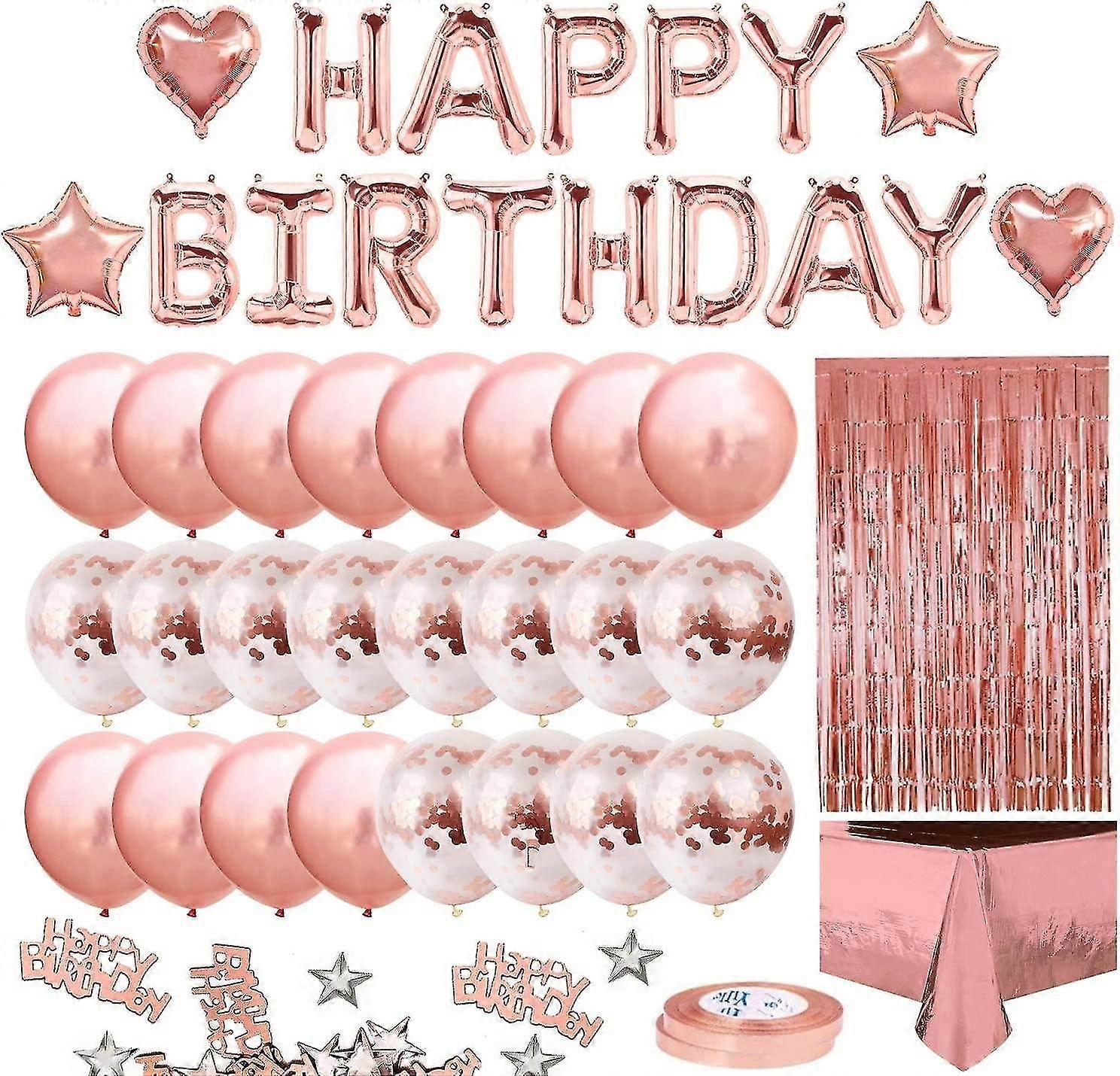 Birthday Pink Balloon Kit Happy Birthday Garland, Rose Gold Tablecloth, Fringe Curtain, 24 Confetti