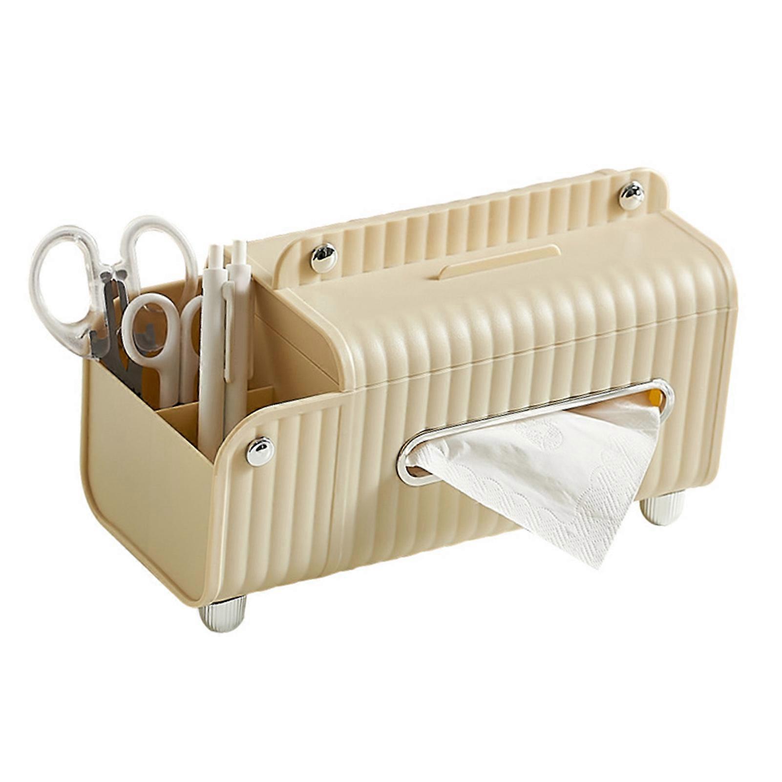 Tissue Cover HIPS ABS Multifunctional Desktop Rectangular Napkin Dispenser Holder with Stationery Box for Living Room Bedroom