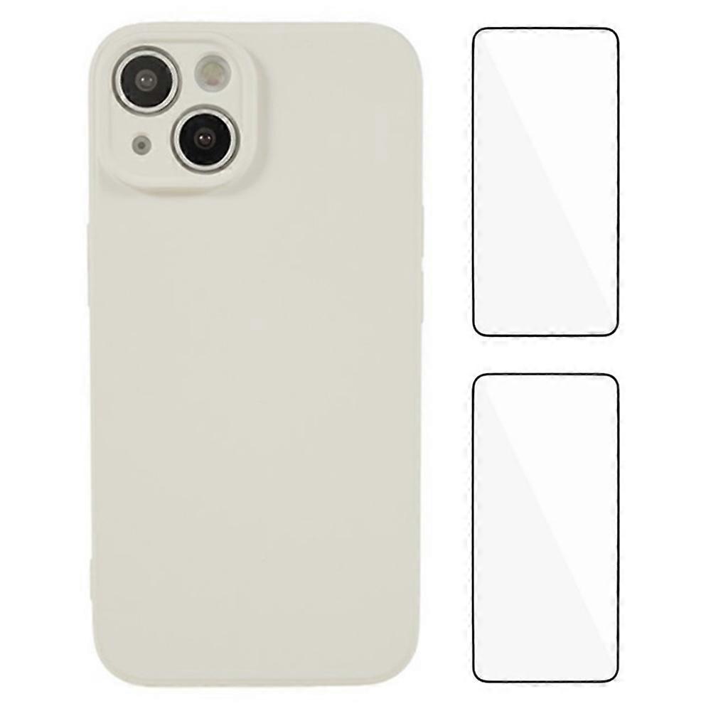 Cases Cover WANLONFENG RB3 Series For iPhone 14 Case with 2Pcs Screen Film, Precise Lens Hole Soft TPU Phone Back Cover - White