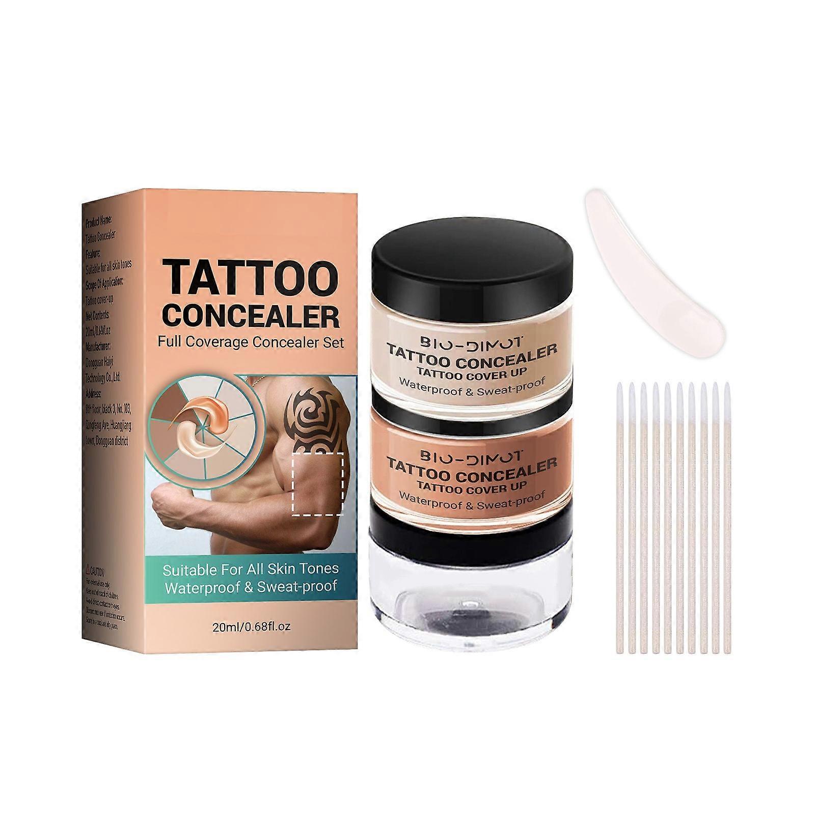 TATTOO COVER UP: The tattoo cover up makeup are made from high quality ingredients and you can blend a colour that blends perfectly with your skin tone, giving you a perfect coverage that is very natural LONG LASTING COVERAGE: Tattoo cover up makeup waterproof resists sweat and water, meaning you can wear it confidently to important events without having to worry about touch ups WATERPROOF & SWEATPROOF: Our concealer full coverage has a water resistant formula that ensures long lasting coverage by applying evenly to both and then drying to give you continuous coverage DUAL COLOR OPTIONS: Our dark tattoo cover up makeup waterproof and light nude tattoo cover up can be used alone or mixed to evenly cover scars, tattoos, camouflage, blemishes and birthmarks for all skin tones EASY TO USE: Simply apply the colour that suits your skin tone and dry evenly for a long-lasting effect
