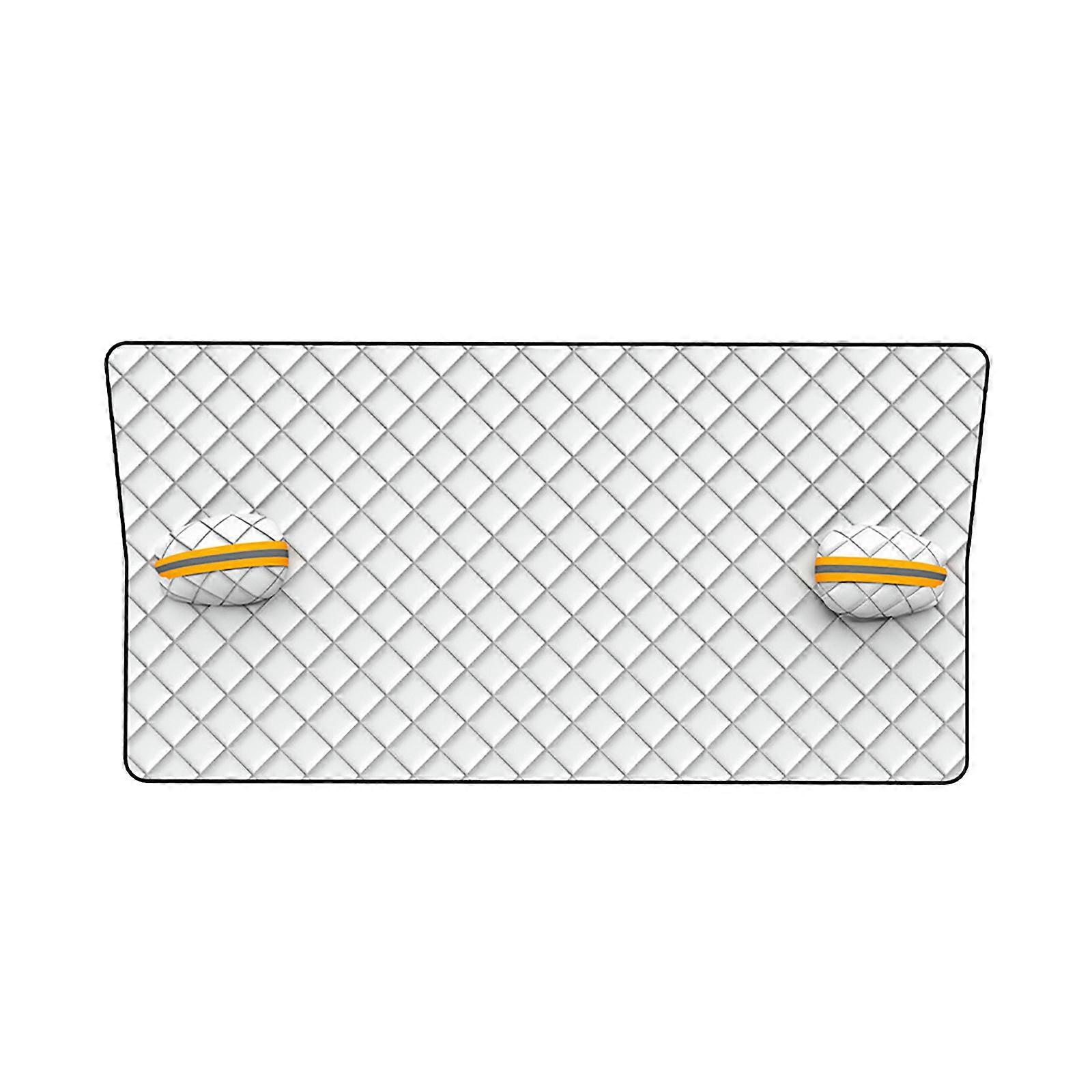 Windshield Snow Cover With Magnetic Edges Winter Frost Protector For Cars Features: 【2025 Upgraded Windshield Snow Cover】: Full protection car windshield cover and side mirror cover protects your vehicle windscreen,wipers and side mirrors from snow,frost, ice and Sun -Rays. and easy to install, save and efforts.Windscreen cover is made of 5 of quality materials,Custom made windproof webbing straps help the snow cover stays firmly,the cover will not be blown away.Simply the cover and -off the snow and your good to go.Suitable for different seasons. 【Will Not Blow Off and Easy To Install】: Our car windshield snow cover come with 12 Magnets ,2 fixing straps with hook easily attach to your wheels for secure , which can snugly your car and the car snow cover is not easy to be blown away. Double stitched door flaps ensure a secure that won't tear or come loose. Close the inner vehicle doors to ensure a secure to your windshield to effectively block the , from wind and thieves. 【More Advanced Material】: Made of PEAV Aluminum Foil, Spunlace Cotton,Fine warp and weft cotton,Spunlace Cotton,and Non-woven Layer,Thicker and fabric effectively protects the windshield and side mirrors from the ice/ snow/ frost/ rain/ sun/ leaves/ ,Provide the protection to your car winter and summer. The mirror cover protector is equipped with night reflective strips also to being scratched by other vehicles at night. 【Multifunction Car Windshield Cover】: The all weather windshield cover not keeps the front disc and side mirrors from ice and snow in winter, but blocks the and sun heating in summer. It can also be used as a protective shield, against and in everyday life.thicker and fabric ( 1.2lb),Rip- for long-lasting use.Easy to carry, can be folded up and put into a special bag when not in use, put it in the car for easy use . 【Don't forgotten about Side Mirrors】: Just takes two steps and 15 seconds to complete the installation. Car winter snow cover is easy to install and disassemble,Pinching the two of the windshield cover gear into the door and closing the door, then placing the side mirror protectors position,fasten the hooks of the elastic to the tire. The size is 90.5 Inch(width)*54.3 inch(height). To ensure you select a more appropriate size, please take an accurate measurement of your windshield. Product Description: size:90.5*54.3in package includes:1pc car snow cover