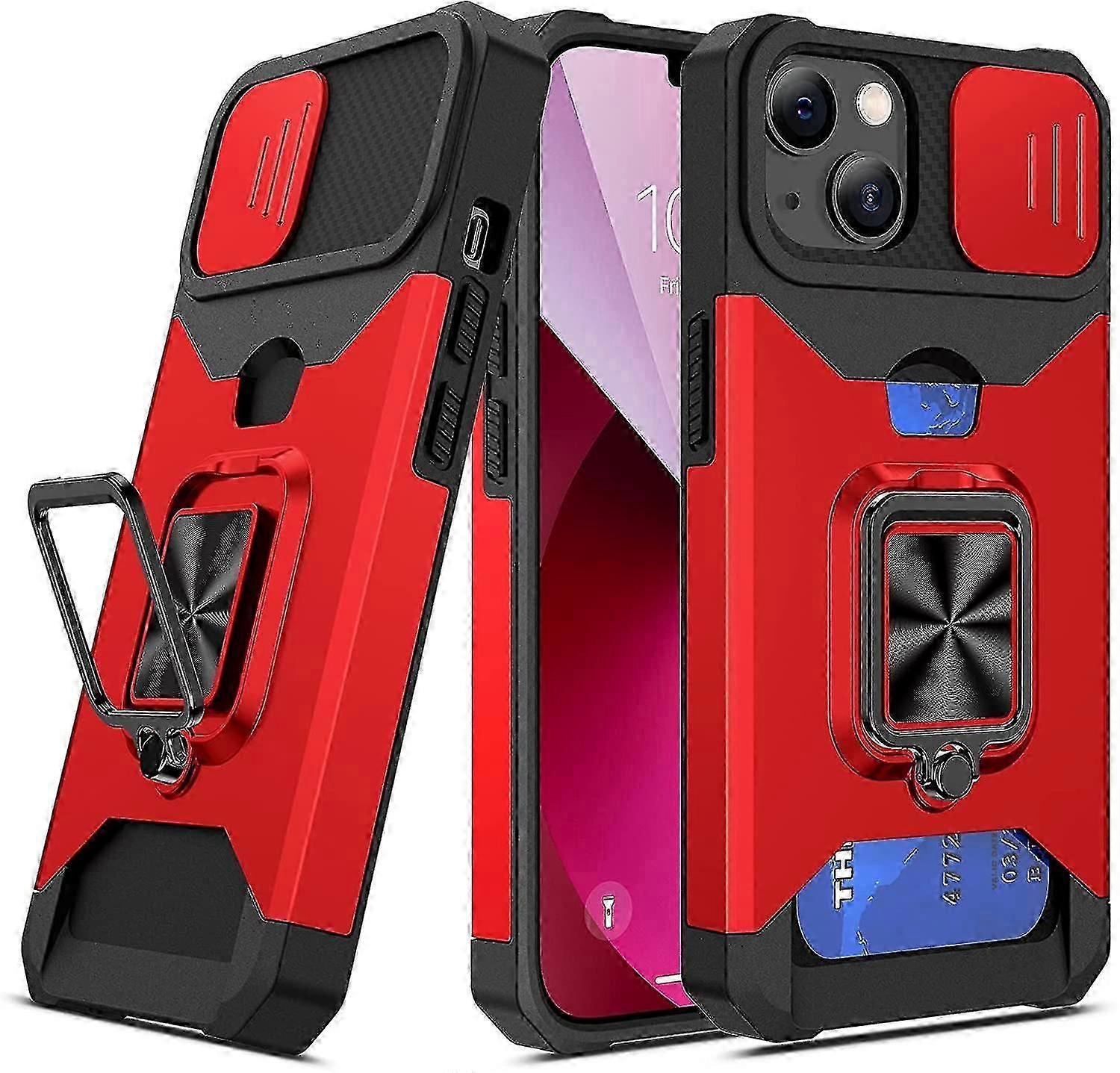 Phone case cover for iPhone 13 ring-shaped holder phone case with sliding cover holder and military grade protective wallet phone case with rotating m