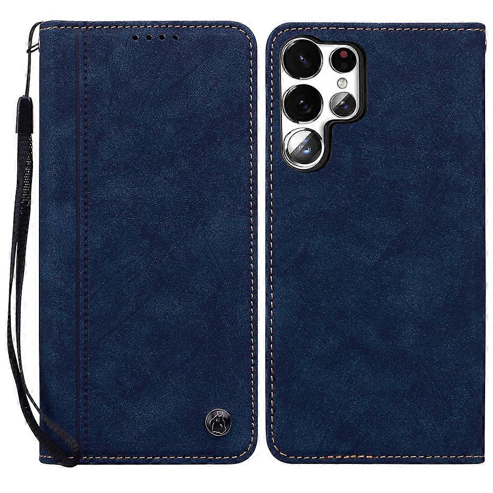 TKdaddy Case Cover For Samsung Galaxy S23 Ultra Case Lines Pattern Wallet Leather Phone Cover with Strap Blue