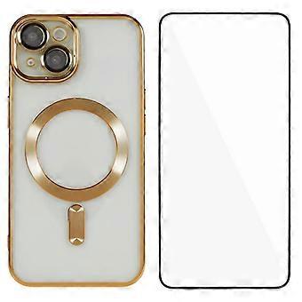 غطاء حافظات لآيفون 14 جراب مغناطيسي WANLONFENG غطاء TPU مطلي بالكهرباء بحماية كاملة مع زجاج مقسى - ذهبي