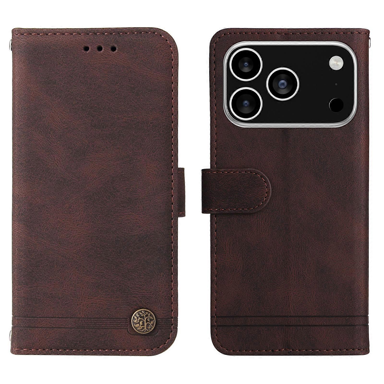 Cases Cover For iPhone 17 Pro Leather Wallet Cases Skin Touch Phone Cover Stand with Strap - Brown