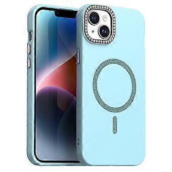 غطاء حافظات لجراب آيفون 15 بلس / 14 بلس متوافق مع غطاء هاتف ماج سيف تي بي يو + بي إيه تي مع إطار عدسة ديكور من حجر الراين - أزرق