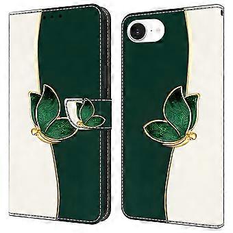Cases Cover For iPhone 16e Leather Case Pattern Printing Wallet Stand Anti Drop Phone Cover - Green Butterfly