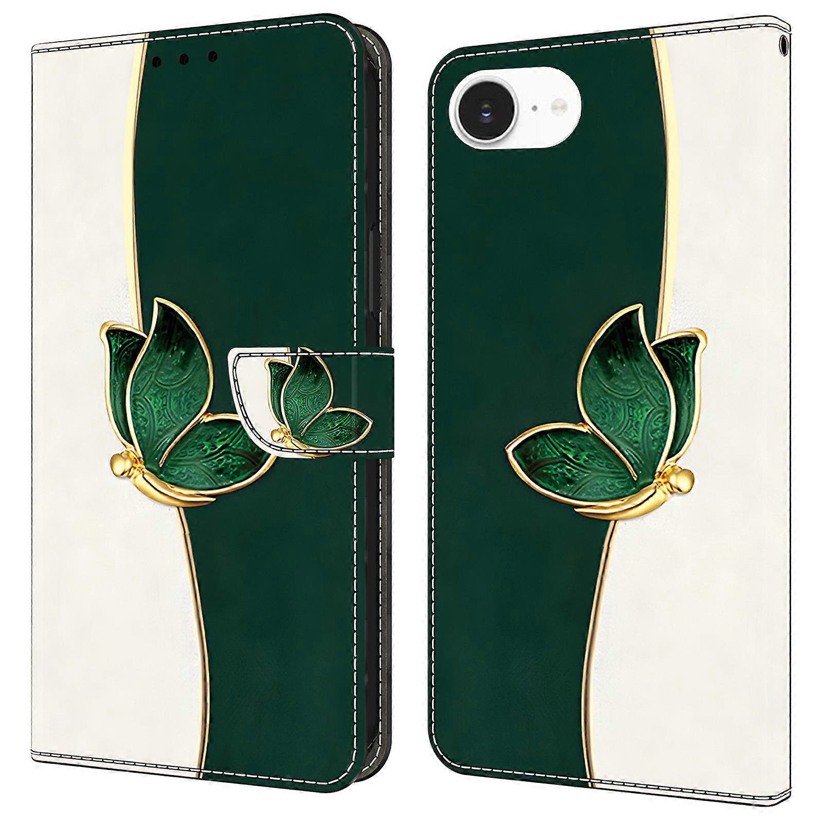 Cases Cover For iPhone 16e Leather Case Pattern Printing Wallet Stand Anti Drop Phone Cover - Green Butterfly