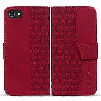 Cases Cover For iPhone 16e Case Rhombus Pattern Leather Wallet Phone Cover - Red