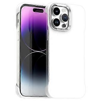 غطاء حافظات لهاتف آيفون 14 برو جراب مغناطيسي بدون إطار رحيף جدا TPU + غطاء هاتف PET زوايا مقواة - أبيض