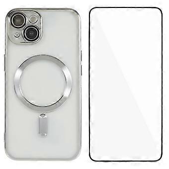 غطاء حافظات لهاتف iPhone 14 جراب مغناطيسي WANLONFENG غطاء TPU مطلي بالكهرباء بحماية كاملة مع زجاج مقسى - فضي