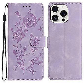 Cases Cover For iPhone 14 Pro Wallet Case Rose Pattern Imprinted Leather Flip Stand Phone Cover - Light Purple