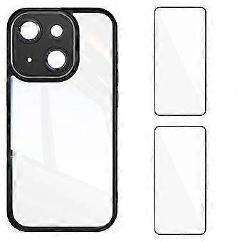 غطاء حافظات لهاتف iPhone 14 TPU غطاء هاتف شفاف مقاوم للسقوط WANLONFENG مع 2 قطعة من الزجاج المقسى - أسود
