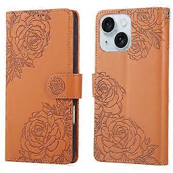 Cases Cover For iPhone 15 Plus / 14 Plus Case Rose Flower PU Leather Wallet Phone Cover with 3 Card Slots - Brown