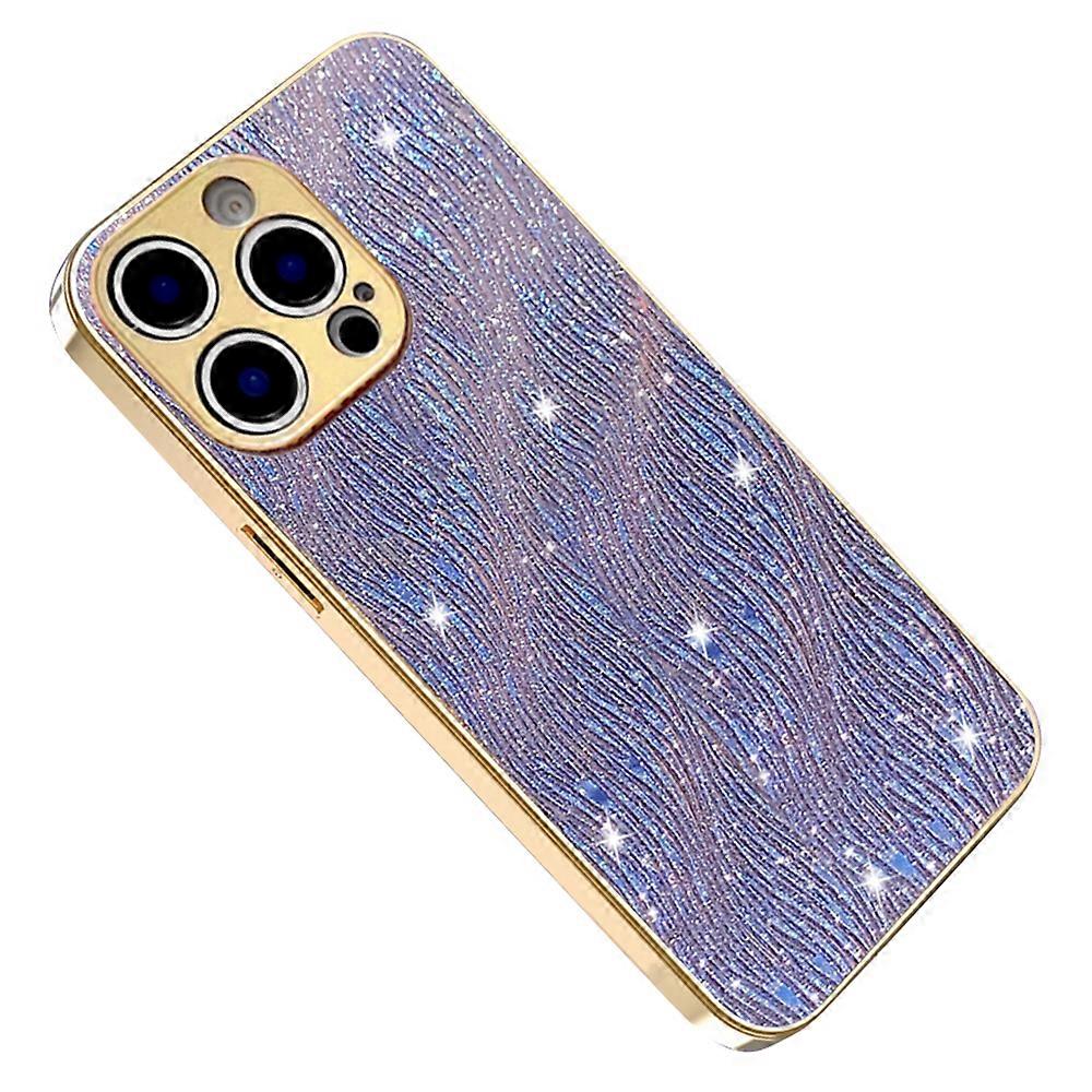 Cases Cover For iPhone 15 Pro Max Case Electroplating Ripple Texture PU + TPU + PC Phone Back Cover - Purple