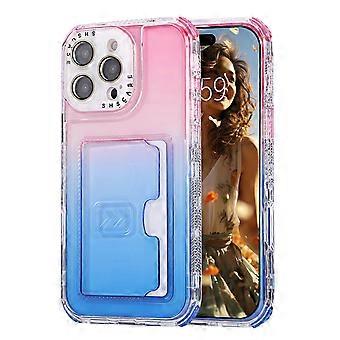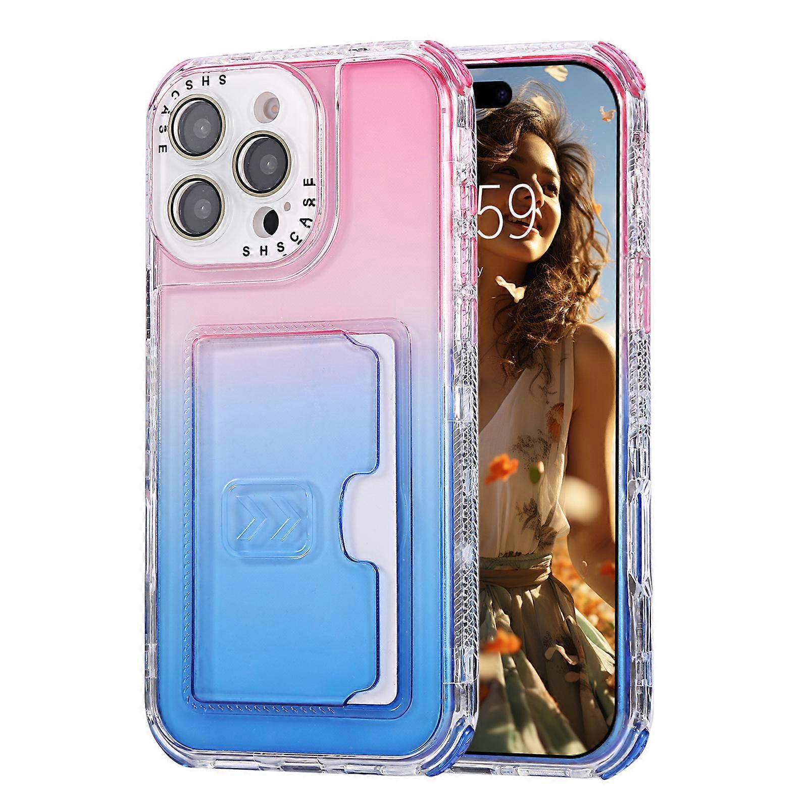 Cases Cover For iPhone 16 Pro Case Card Holder Gradient Color PC + TPU Anti Drop Phone Back Cover with Lens Film - Pink Blue