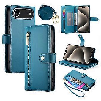 غطاء حافظات لهاتف iPhone 17 غطاء هاتف جلدي بسحاب محفظة جيب مع أحزمة - أزرق