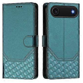 غطاء حافظات لهاتف iPhone 17 غطاء هاتف جلدي مطبوع على شكل قرص العسل RFID مع حزام - أخضر