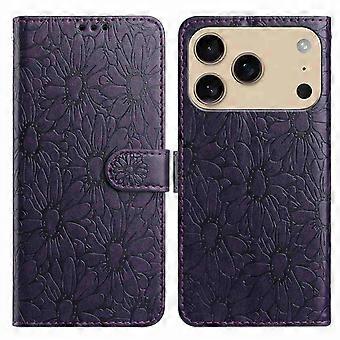 غطاء حافظات لهاتف iPhone 17 Pro غطاء جلدي ديزي إمبصمة محفظة غطاء واقي للهاتف - بنفسجي غامق