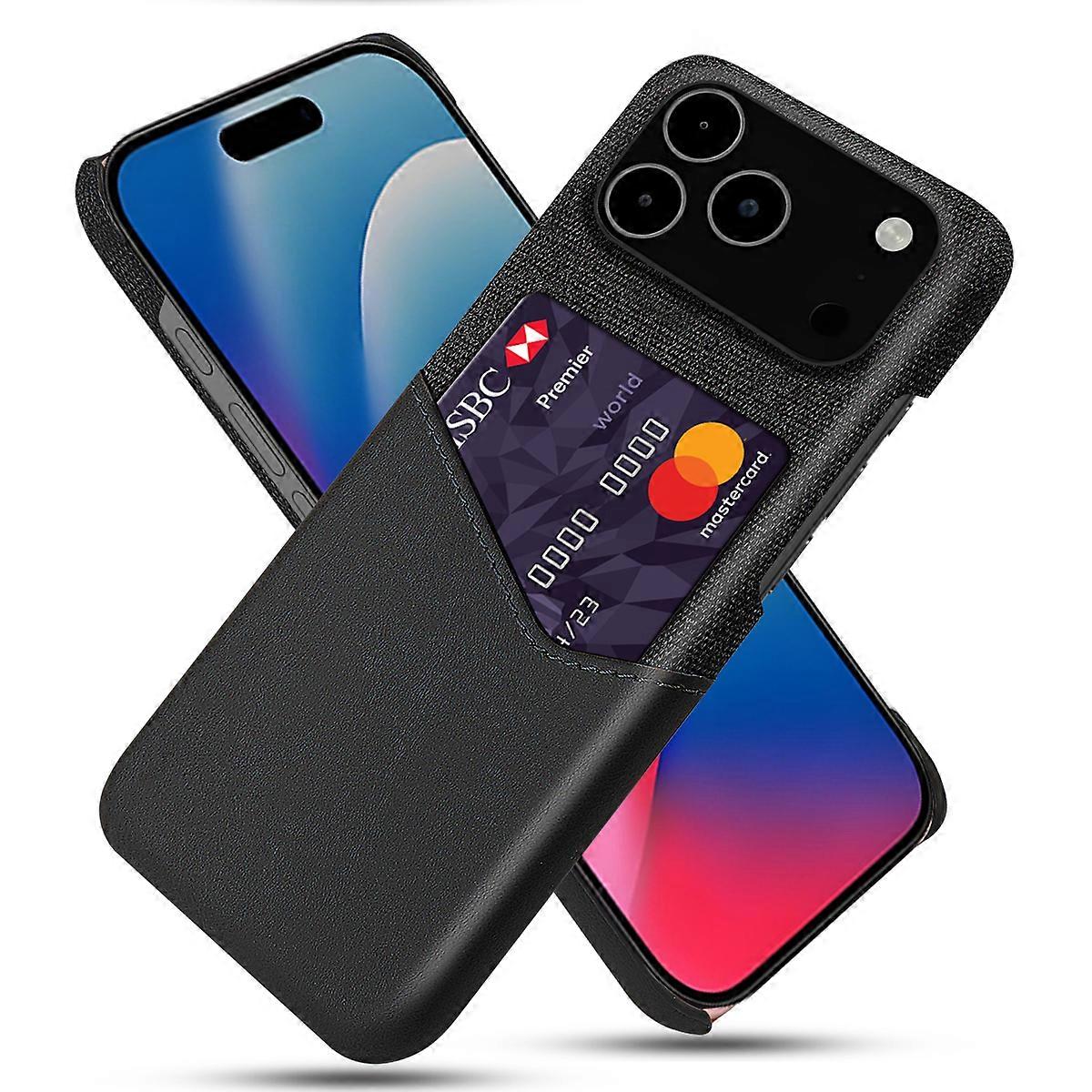 Cases Cover For iPhone 17 Pro Max Case PU Leather Cloth Texture Hard PC Phone Cover with Card Holder - Black