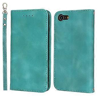 Cases Cover For iPhone SE (2022) (2020) 8 7 Stand Case Magnetic Closure Skin Touch Leather Flip Phone Cover with Wallet - Cyan
