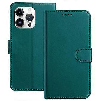 غطاء حافظة لهاتف iPhone 15 Pro Max غطاء جلدي محفظة بلون خالص مضاد للسقوط - أخضر