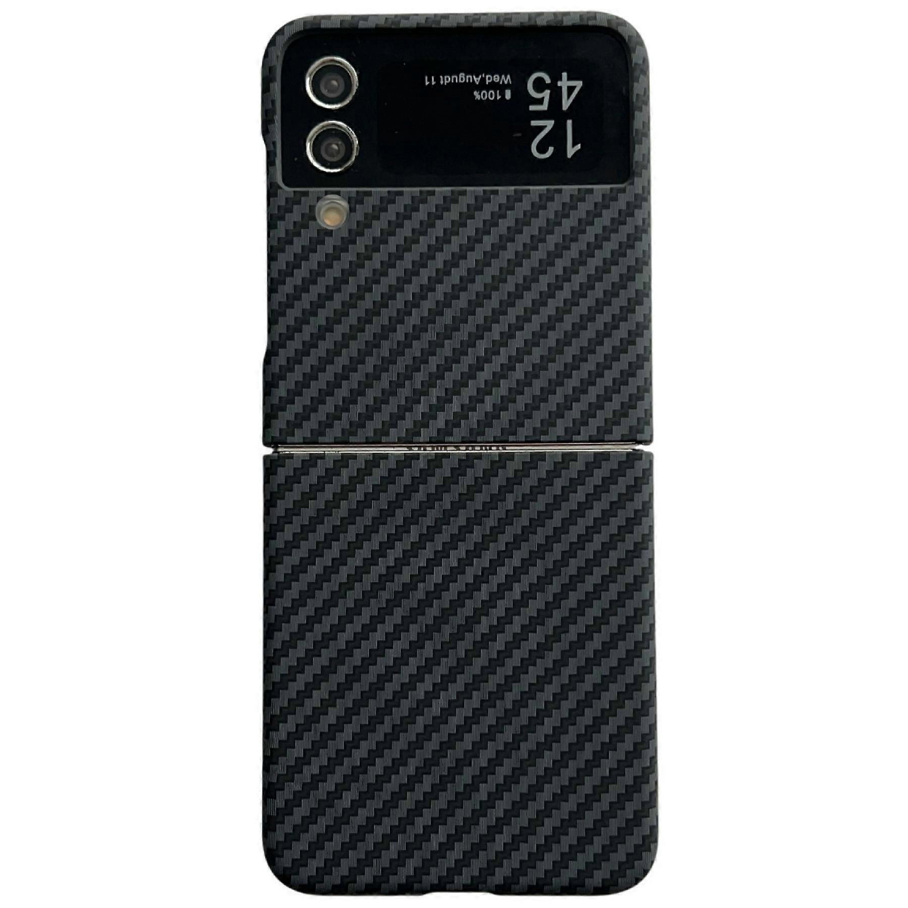 TKdaddy Case Cover For Samsung Galaxy Z Flip4 5G Magnetic Case Carbon Fiber Texture Slim Shockproof PC Phone Cover Black