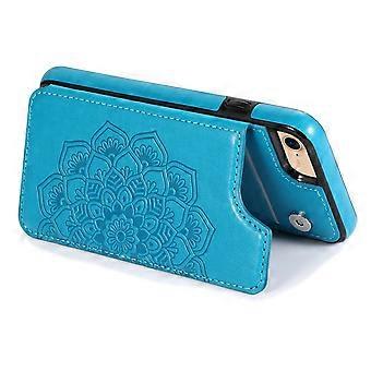 غطاء حماية لآيفون 14 برو 6.1 جلد أزرق ماندالا منقوش Cc223