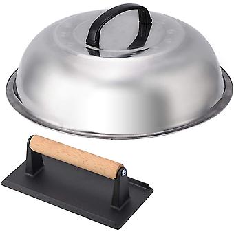 Stainless Steel 12 Inch Basting Cover and Cast Iron Grill Press Kit for Hamburger Bacon Steak