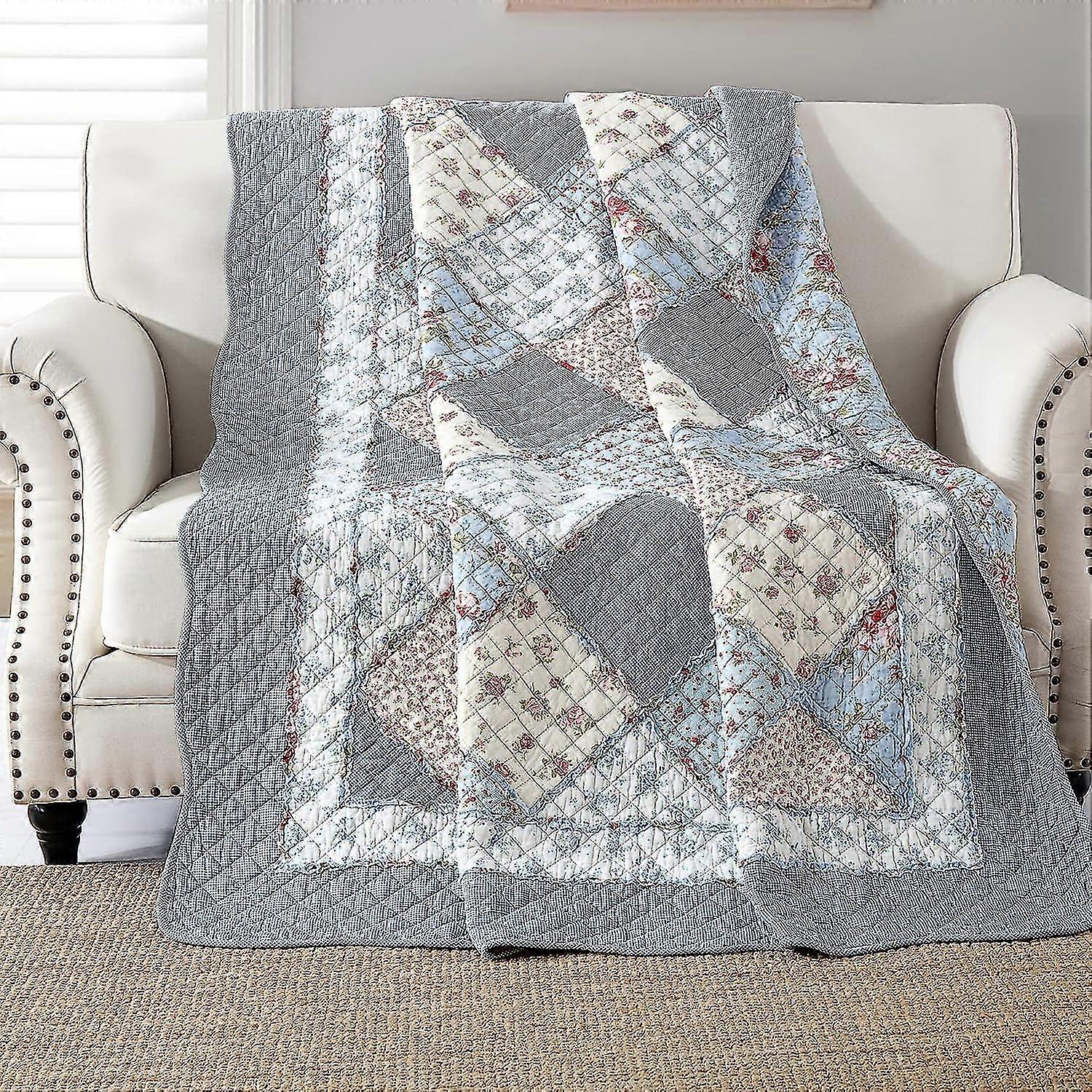 Blue Bedspread 130x150cm, Soft And Comfortable 100% Cotton Single Bedspread, Blue Patterned Patchwork Bedspread, Real Patchwork Bedspread, Suitable Fo