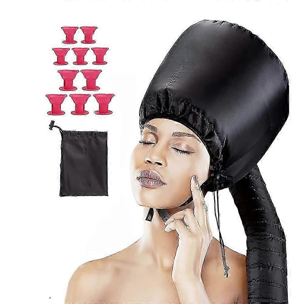 Hair Dryer Bonnet Hood cap with 10 Silicone Hair Curlers and 1 Facial Headband (Black Cap+Curler) Black Cap+Curler -