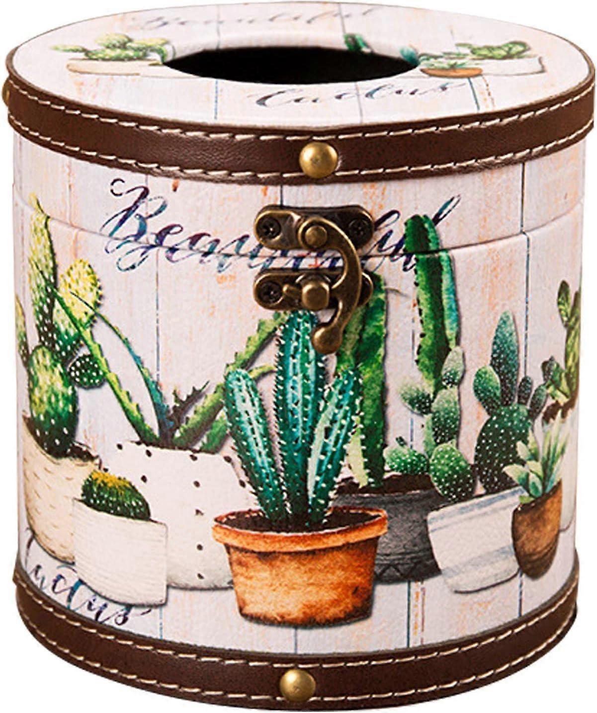 Round Retro Tissue Box Cover, Napkin Holder Leather Pumping Paper Case Dispenser Tissue Paper Holder for Home Office Bedroom Bathroom (multicolour1pc)