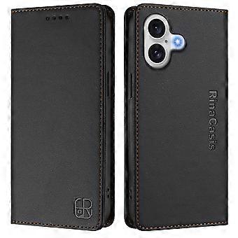 غطاء غطاء لهاتف آيفون 17 جلد غطاء هاتف RINACASIS RC01 مع حامل محفظة RFID - أسود