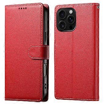 غطاء غطاء DF-012 لآيفون 16 برو ماكس غطاء هاتف ليتشي ملمس جلدي - أحمر