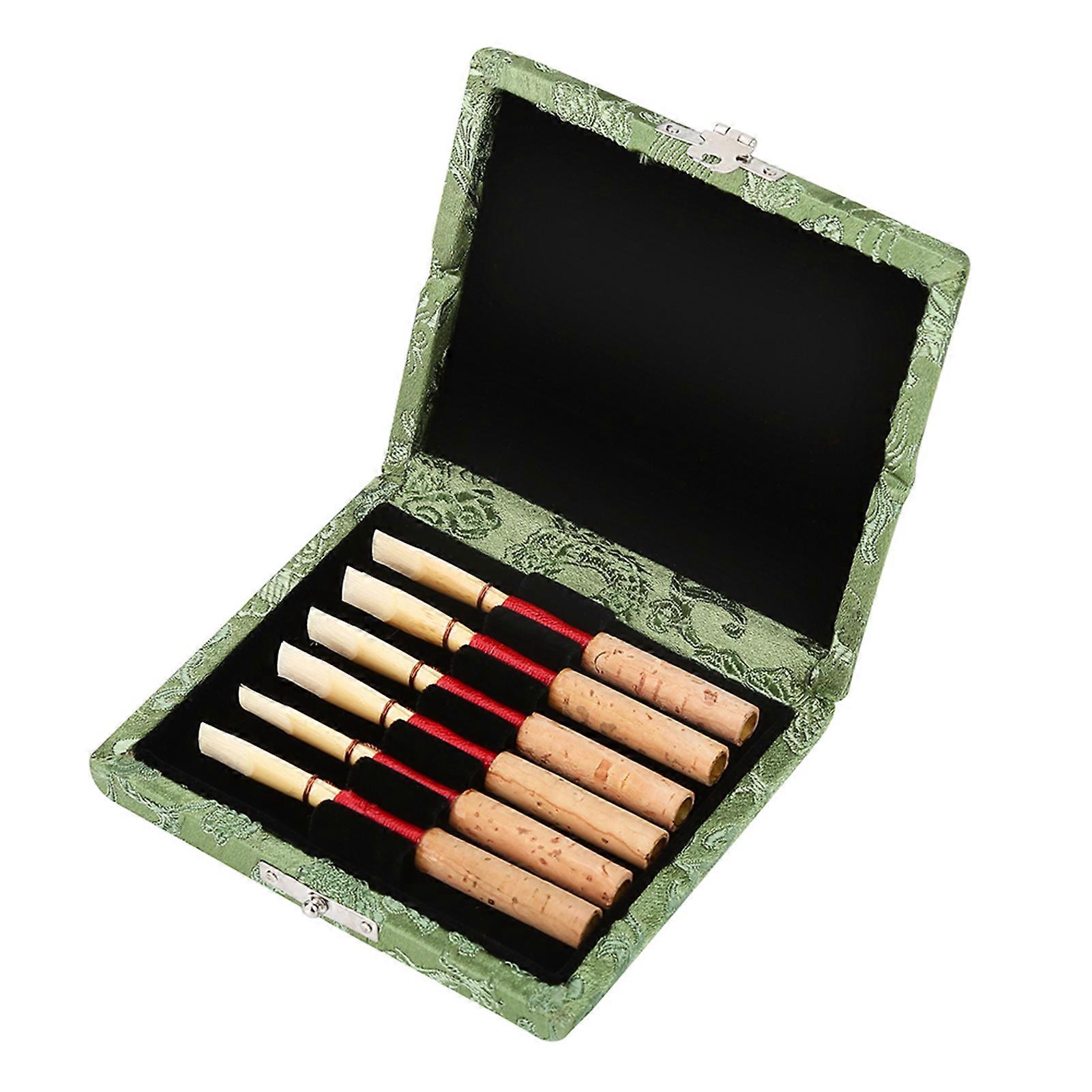Wooden Silk Cloth Cover Reed Case Holder Storage Box for 6pcs Oboe Reeds Green