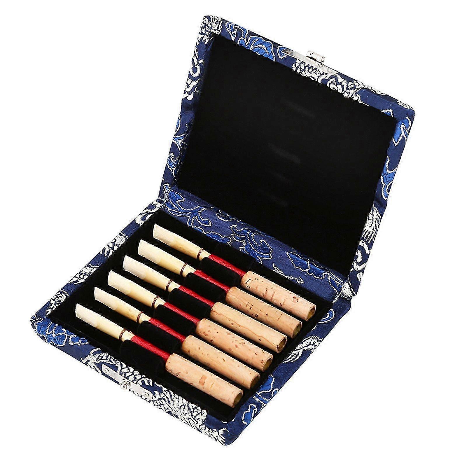 Wooden Silk Cloth Cover Reed Case Holder Storage Box for 6pcs Oboe Reeds Blue