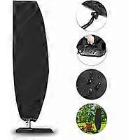 210D Umbrella CoverMade of sturdy oxford fabric (120 gr/qm), this thick protective umbrella cover is waterproof, UV-resistant, tear-resistant and fade-resistant, effectively prevent your parasol from being damaged by rain, snow, wind, dust, humidity and sleet. It helps you extend the life of your umbrella. Waterproof Garden Umbrella Cover The waterproof Oxford fabric also added a UV stabilized coating, which protects your outdoor umbrella from moisture due to the rain and keeps your umbrella dry and ready to use. You no longer have to worry about the umbrella getting wet, rusty, moldy, etc. because nothing escapes this protector, it is indispensable for the sunshade. Windproof design, secure fit - The garden sunshade cover comes with the humanized zipper design, it can protect better. Elevate elasticity and make it easier to open and close. The adjustable belted hem at the bottom gives the Waterproof Outdoor Sun Shade Covers a customizable fit, preventing Outdoor Sun Shade Covers from blowing away on windy days. Large Black Sun Shade Cover Size 280cm high x 30cm wide (top) / 81cm wide (middle) / 45cm wide (bottom). The robust outdoor parasol cover is perfect for patio parasols, 2m rectangular cantilever parasol to 4m round cantilever parasol, balcony parasol, beach parasol, garden parasol, banana parasol and patio umbrella. . Please check the dimensions of your umbrellas / parasols before ordering. Easy to clean and store - Just wash it with water and dry it in the sun. The outdoor umbrella covers also come with a zippered pouch for easy storage when you're away from home.