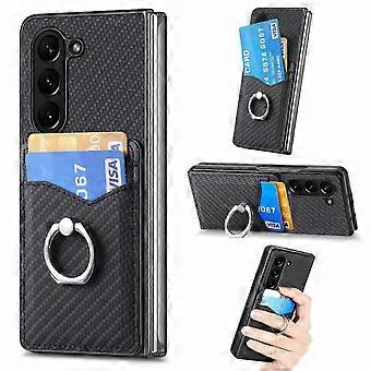 Phone Case for Samsung Galaxy Z Fold 6 Wallet Cover with 360 Rotating Ring Stand and Credit Card Holder, PC+PU Shockproof Anti-Scratch Protective Cove