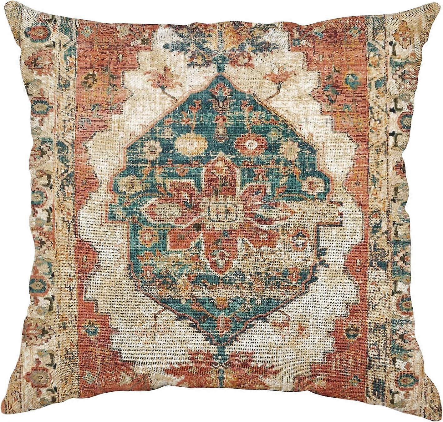 Vintage Throw Pillow Cover 18"x18", Retro Boho Pillow Cover Ethnic Square Persian Pillowcase for Decorate Home Bed Sofa, Brown Decorative Pillow Cases