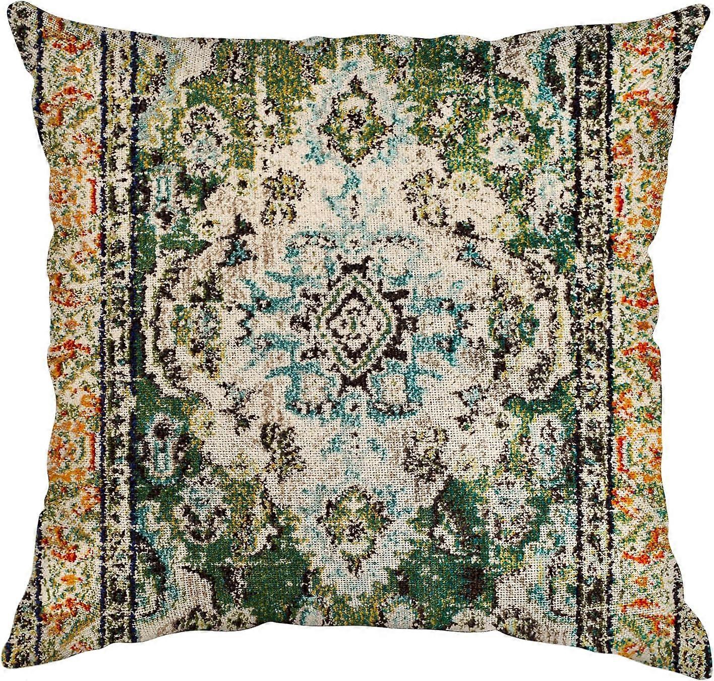 Throw Pillow Cover 18"x18", Vintage Boho Pillow Cover Ethnic Square Persian Pillowcase for Decorate Home Bed Sofa, Green Orange Decorative Pillow Case