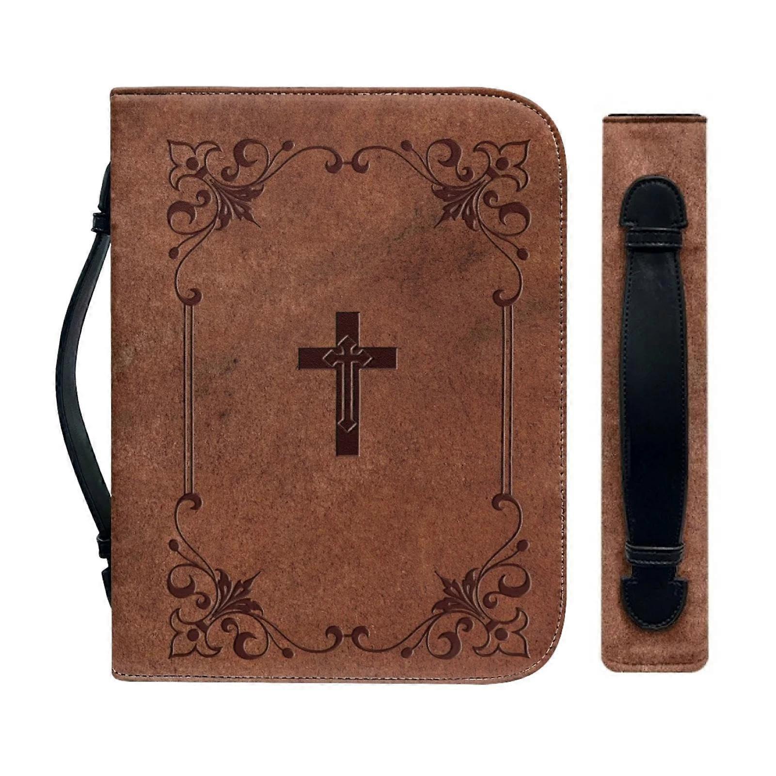 Classic Bible Cover - Bible Book Tote Bag | Church Bible Carrier | XL Zippered Bible Bag for Men and Women | Stylish Cross Design