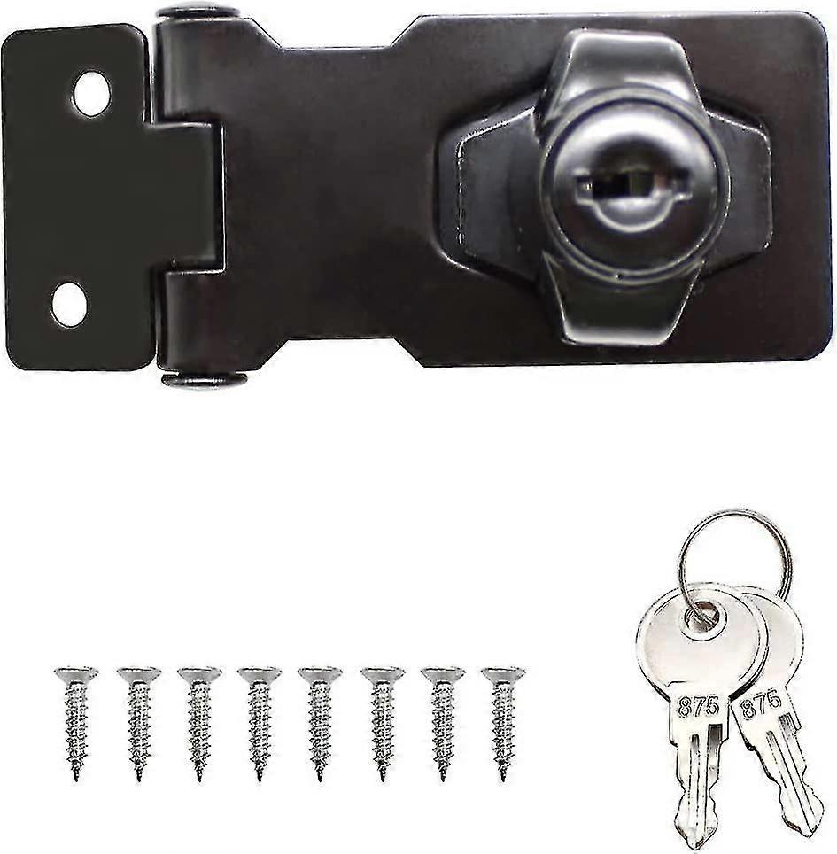 Black Metal Locking Hasp, Door Locking Device With Key For Front Doors, For Locking Shelter Doors, Cabinets, Boxes, Furniture Hy