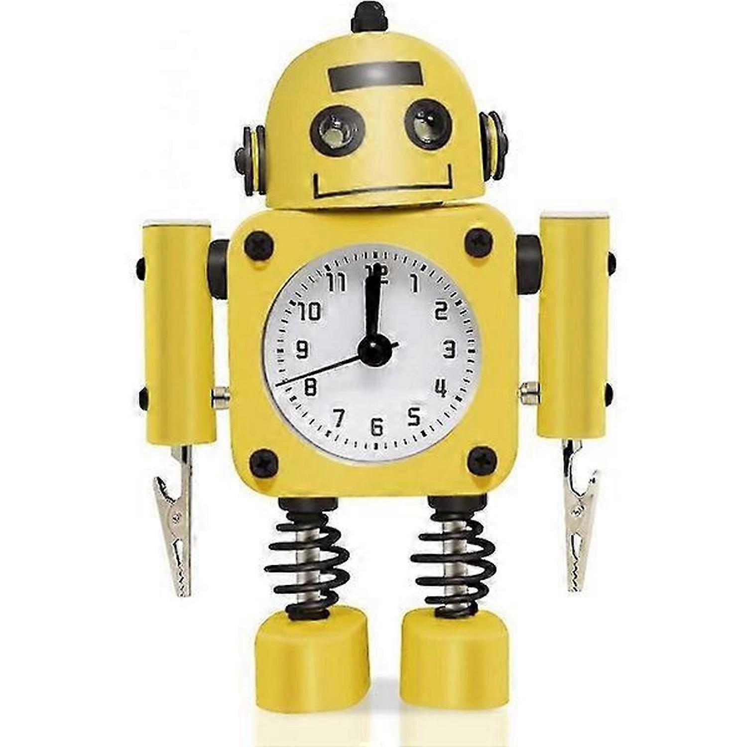 Non-ticking Robot Alarm Clock Stainless Metal - Wake-up Clock With Flashing Eye Lights And Hand Clip