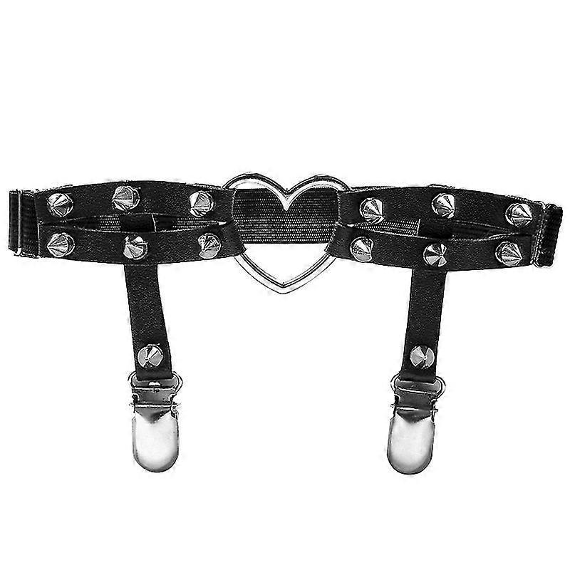 Punk Love Heart Shaped Peach Heart Handmade Pointed Studded Leg Loops Thigh Loops Nightclub Streetwear Sock Clips Garters Women's Heart Suspenders Bel