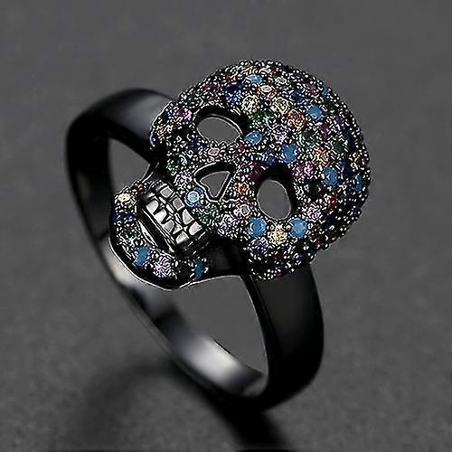 Punk Colorful Cz Skeleton Devil Ring Black White Bling Zircon Skull Face Iced Rings For Men Fashio Biker Hip Hop Jewelry(black Size6)